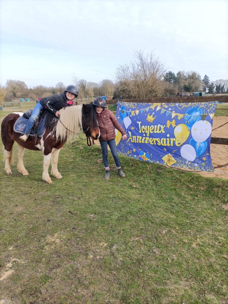 - gouter d'anniversaire avec les poneys (si la météo le permet) ou gouter en salle : cake marbré, boisson et bonbons sont inclus (vous pouvez apporter d'autres choses si vous le souhaitez)