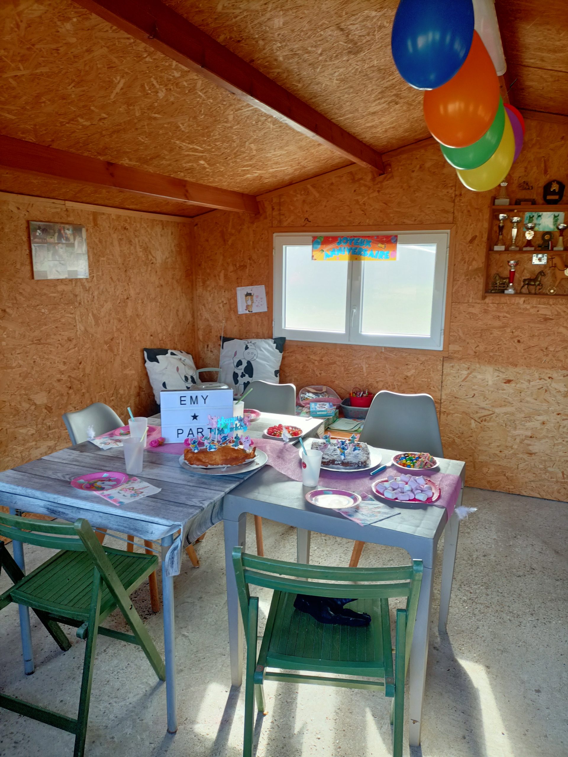 - gouter d'anniversaire avec les poneys (si la météo le permet) ou gouter en salle : cake marbré, boisson et bonbons sont inclus (vous pouvez apporter d'autres choses si vous le souhaitez)